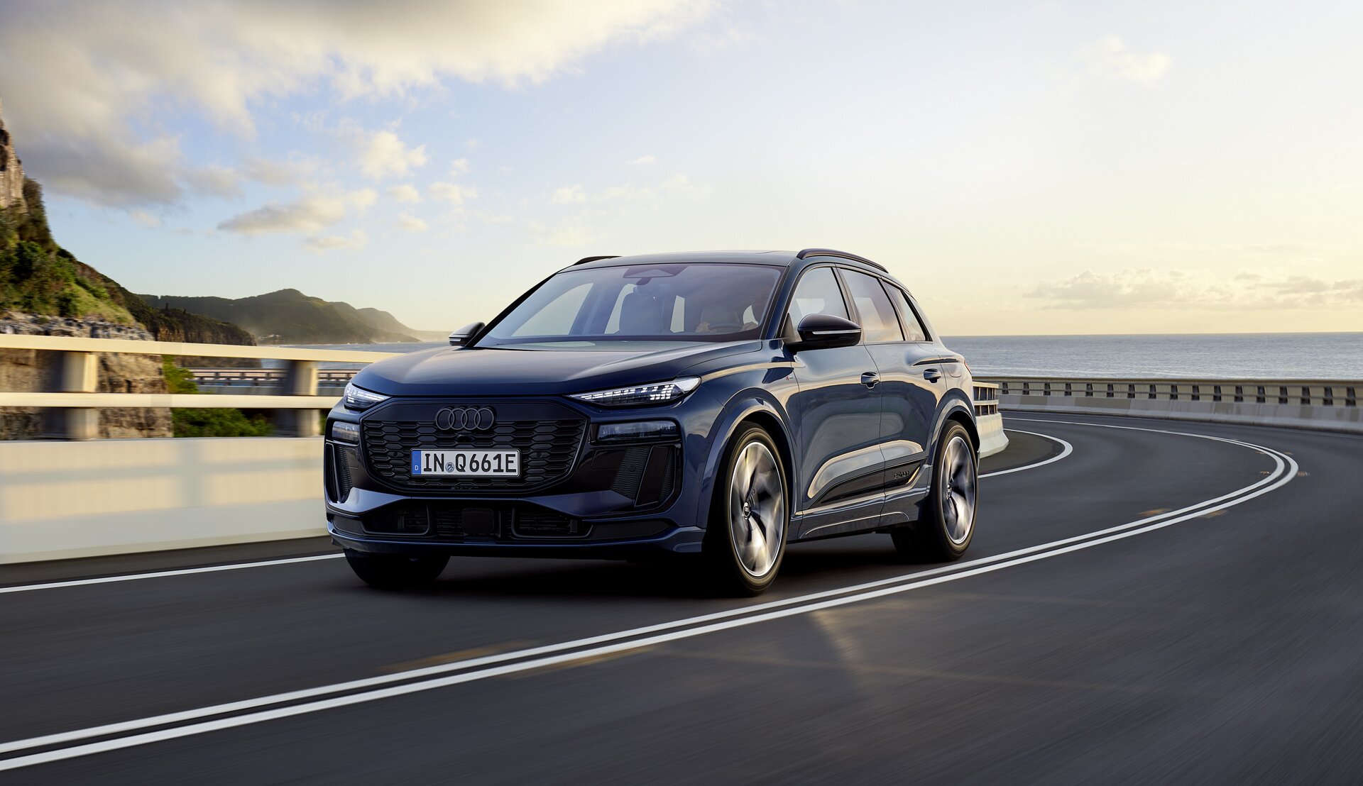 Audi Q6 e-tron har et dynamisk og moderne design med en slank, aerodynamisk form. Lysteknologi er en viktig del av Audis DNA. Med verdens første aktive digitale lyssignatur innleder Q6 e-tron en ny æra preget av særegen design og estetikk unik for Audi. Modellen er den første modellen på den nyutviklede Premium Platform Electric (PPE), som gir rom for rask lading og effektiv batteribruk, samt lang rekkevidde på én lading.